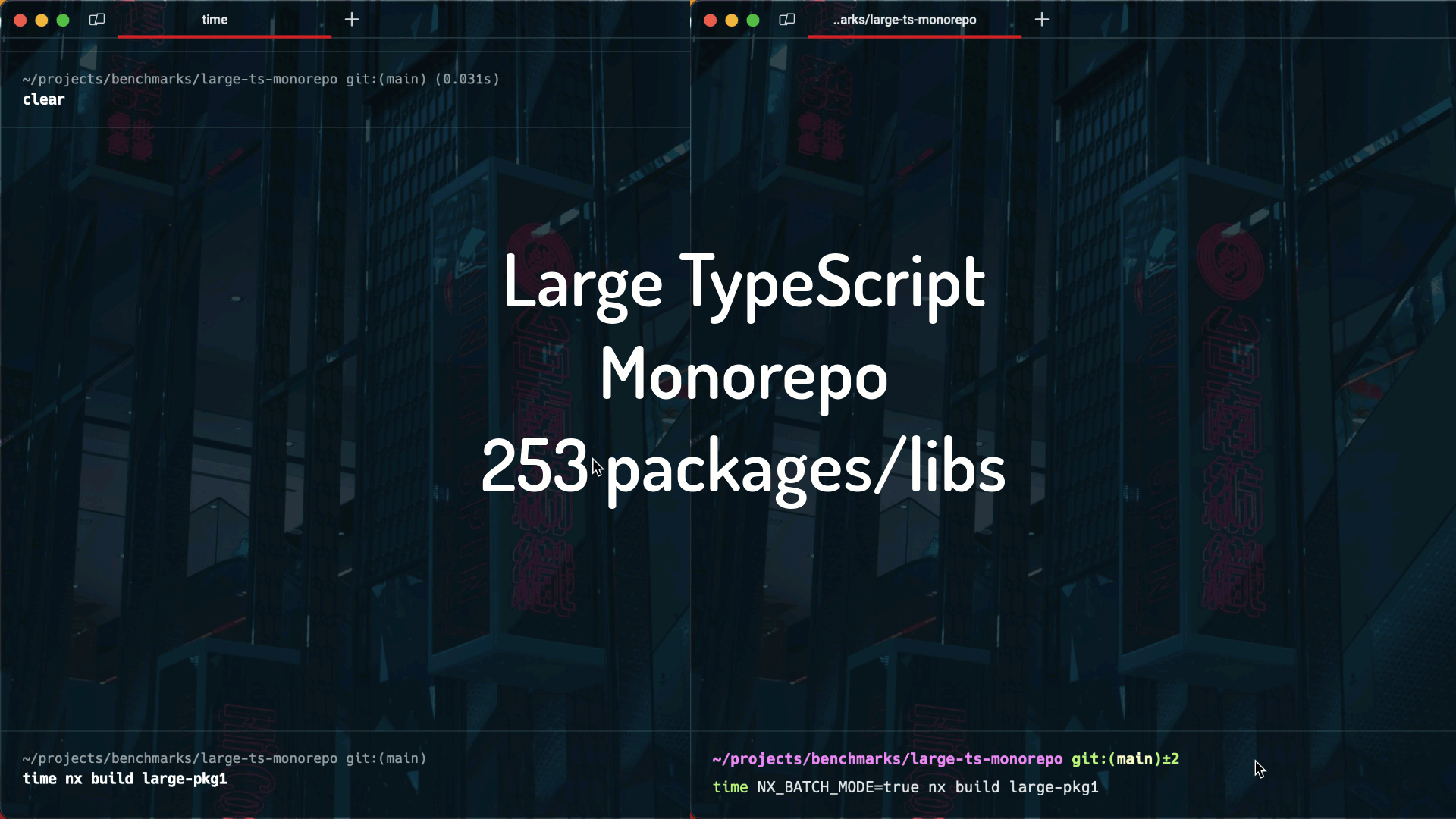 But we wouldn’t be talking about Nx if we didn’t also look into speeding up TypeScript compilation for large monorepos. We called it “batch mode”. When enabling batch mode, Nx leverages the underlying project graph to generate TypeScript project references behind the scenes for you, to fully leverage TS incremental building. The results are amazing. According to our benchmarks, batch mode has the potential to speed up Typescript compilation by up to 5x for large monorepos.