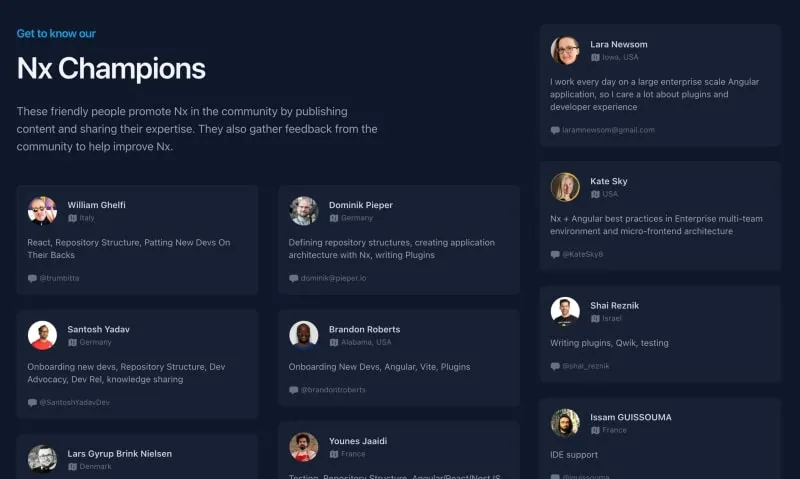 These are individuals who stood out for their contributions and passion for helping within the Nx community. We wanted to build a more connected relationship with these folks and have a channel to gather more direct feedback as well. Get to know all of our champions.